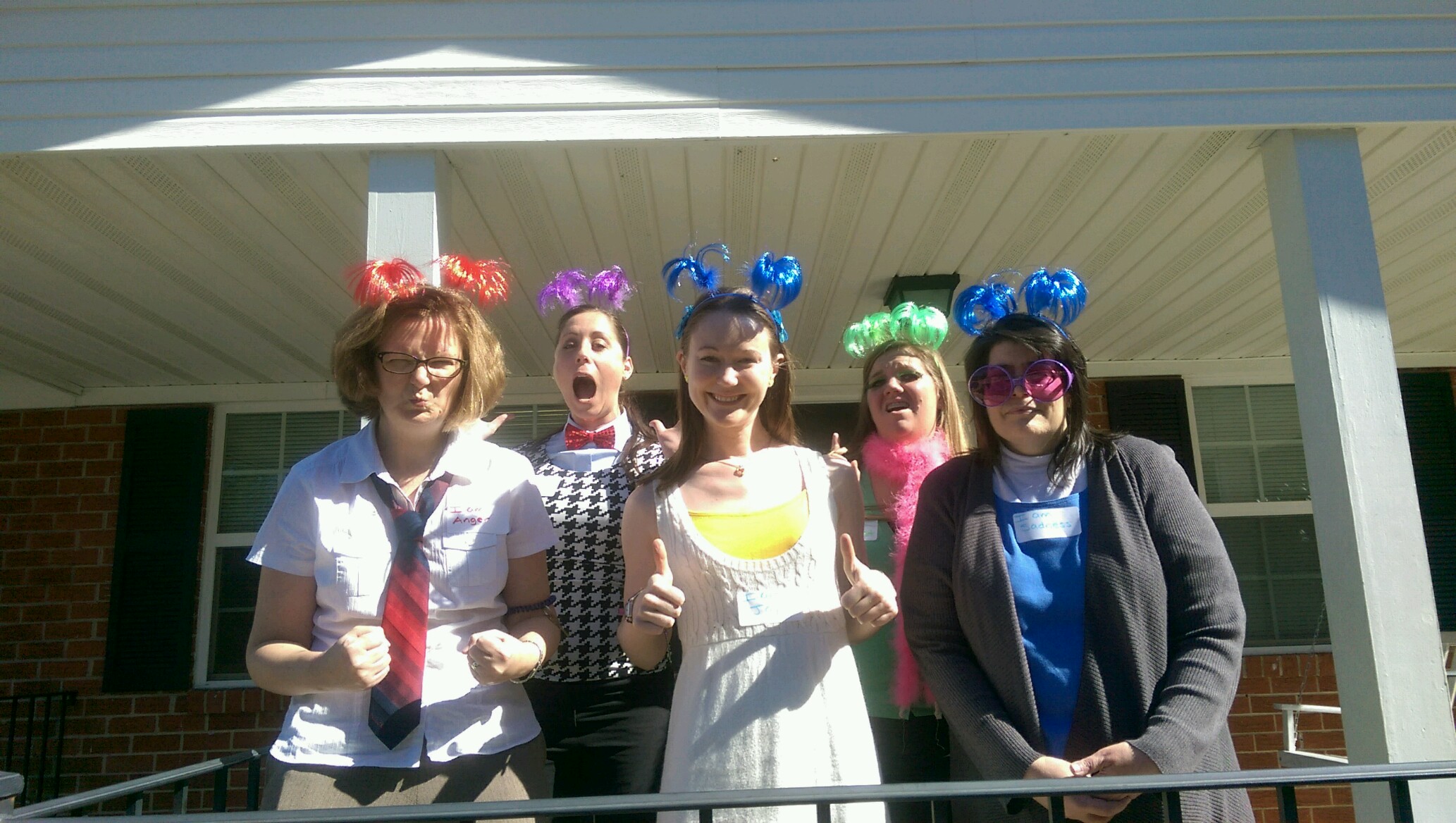 The staff at CNC dresses up for Halloween! It was only appropriate to dress as emotions! From left to right:  Anger, Fear, Joy, Disgust & Sadness.