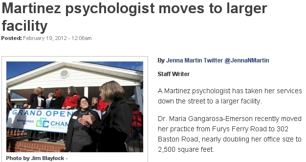 The business name has been changed from Maria E. Gangarosa-Emerson, PhD, PC to the Child Neurobehavioral Center for Health & Wellness, PC.  This change was implemented to emphasis the expansion of clinicians as well as further the vision of the business.  It is our pleasure to work together to provide you and your children with the most "cutting edge" services to remediate developmental, attentional, processing and emotional problems.  We offer neurofeedback therapy, trauma/TF-CBT treatment, vision rehabilitation, and programs including Lindamood Bell®*. Please call 706-447-8700 for more information about our services.